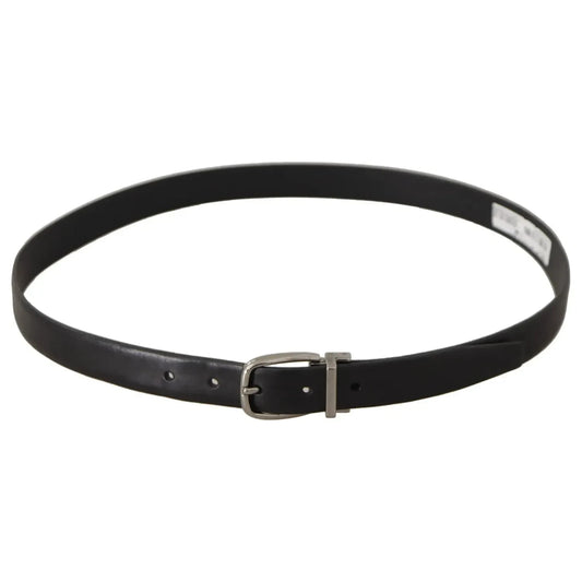 Dolce & Gabbana Black Calf Leather Silver Metal Buckle Belt