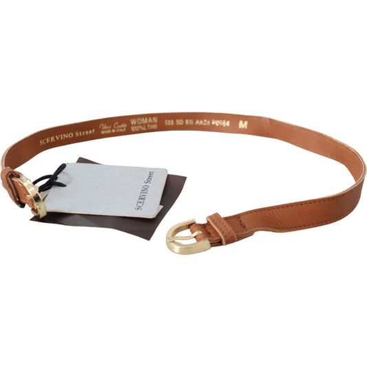 Scervino Street Light Brown Leather Gold Double Buckle Waist Belt