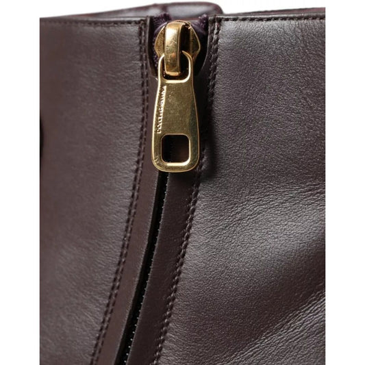 Dolce & Gabbana Brown Leather AMORE Flats Ankle Boots Shoes