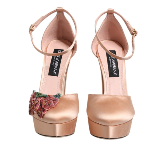 Dolce & Gabbana Pink Brocade Crystal Lily Ankle Strap Shoes