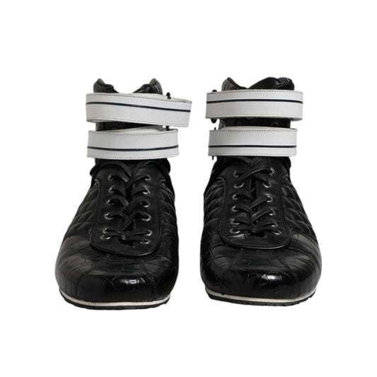 Dolce & Gabbana Black Quilted Leather Lace Up Sneakers Shoes