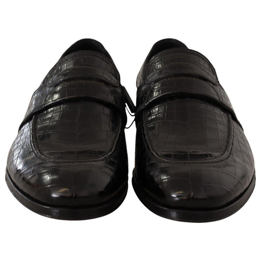 Dolce & Gabbana Black Crocodile Leather Slip On Moccasin Shoes