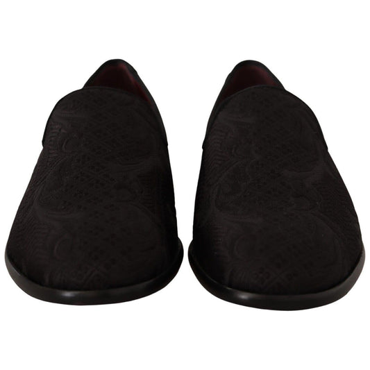 Dolce & Gabbana Black Floral Brocade Slippers Loafers Shoes