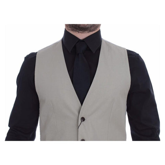 Dolce & Gabbana Gray Cotton Slim Fit Button Front Dress Vest