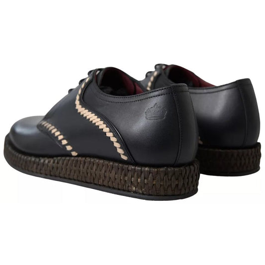 Dolce & Gabbana Black Leather Beige Derby Dress Shoes
