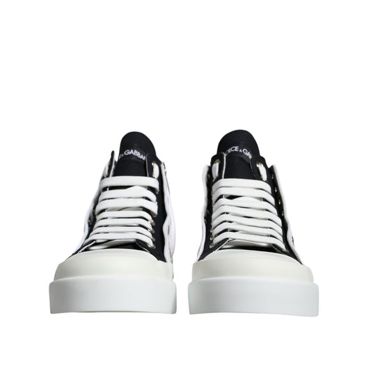 Dolce & Gabbana White Black Cotton Logo High Top Sneaker Shoes