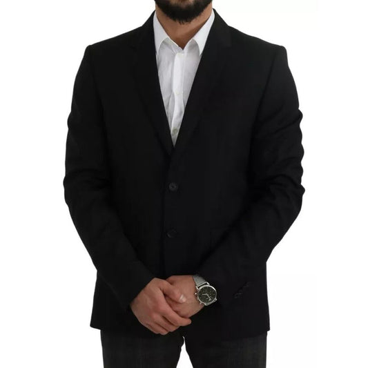 Dolce & Gabbana Black Wool Slim Fit Coat Jacket Blazer