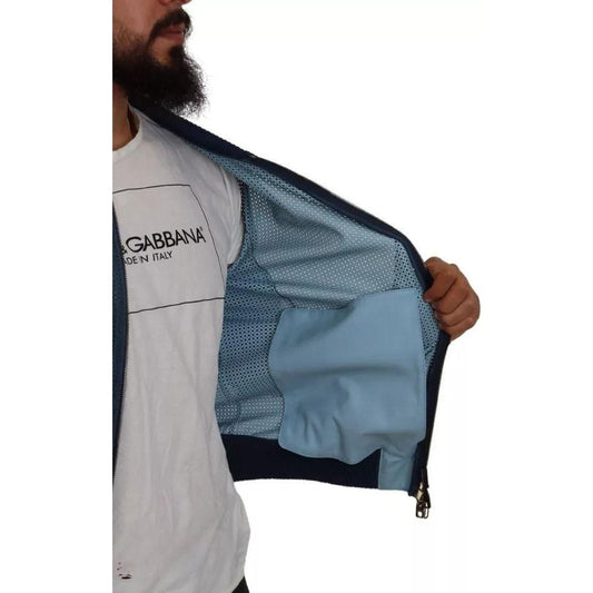 Dolce & Gabbana Blue Leather Perforated Full Zip Jacket
