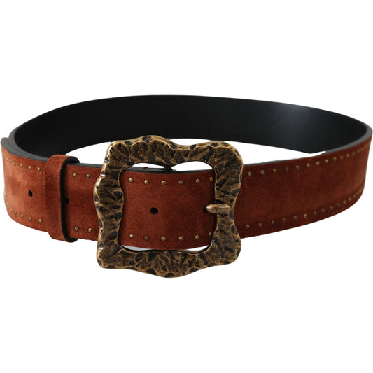 Dolce & Gabbana Brown Suede Leather Studded Baroque Belt