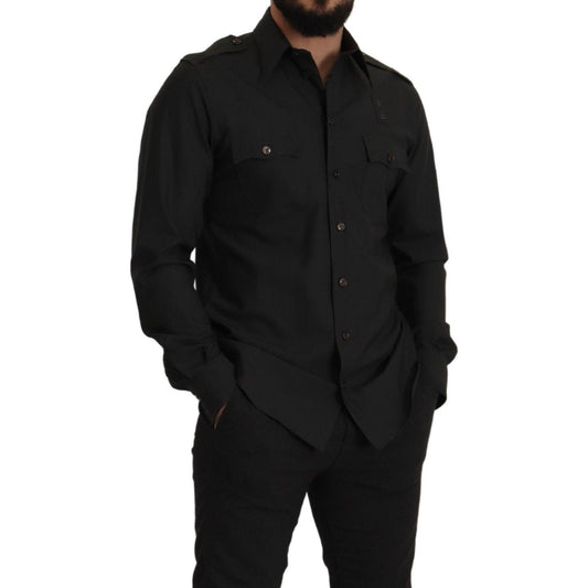 Dolce & Gabbana Dark Green Cotton Slim Fit Casual Men Shirt