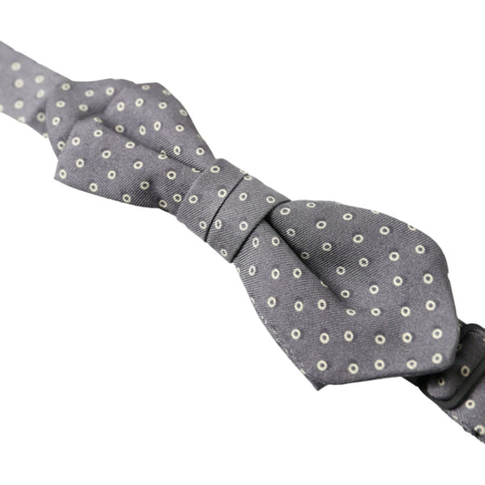 Dolce & Gabbana Gray Polka Dot Silk Adjustable Neck Men Papillon Bow Tie