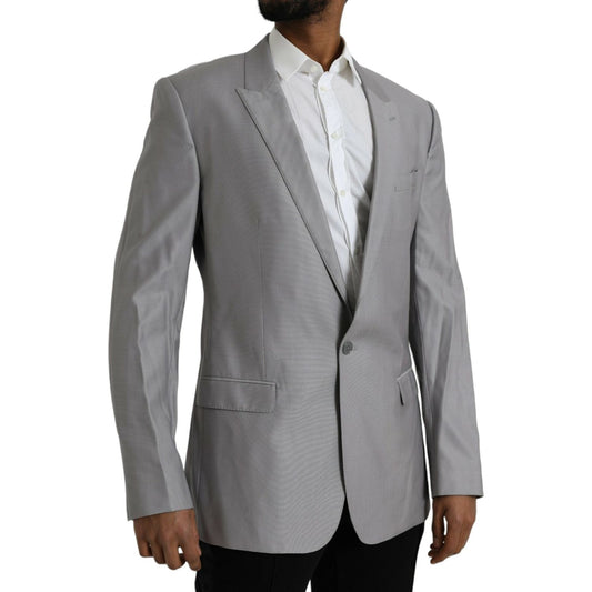 Dolce & Gabbana Gray Wool Peak Single Breasted Coat Blazer