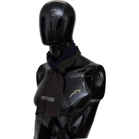 Missoni Black Blue Striped Wool Unisex Wrap scarf
