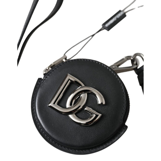 Dolce & Gabbana Black Round Leather DG Logo Coin Purse Lanyard Wallet