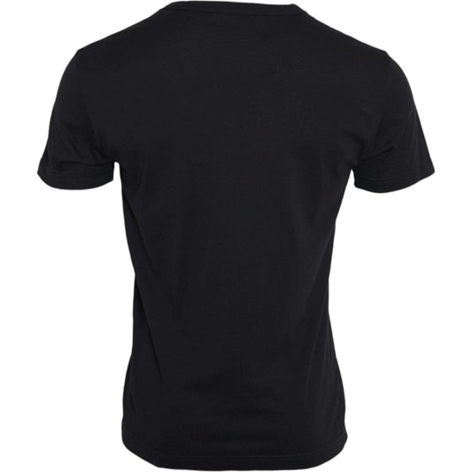 Dolce & Gabbana Black Cotton Silver Chain Short Sleeve T-shirt