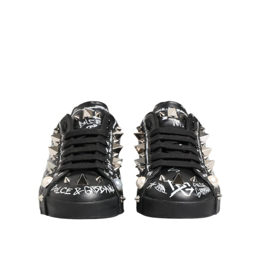 Dolce & Gabbana Black Portofino Stud Embellished Sneakers Shoes