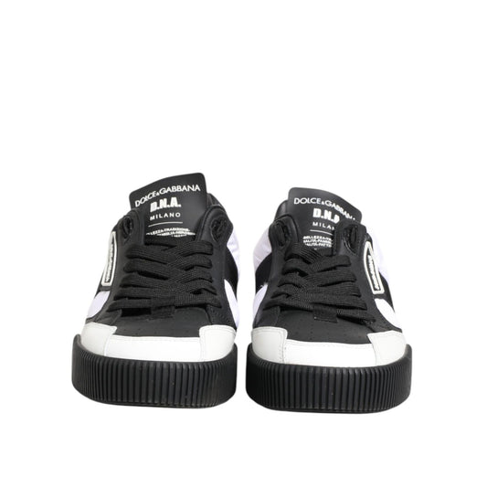 Dolce & Gabbana Black White Leather MIAMI Low Top Sneakers Shoes