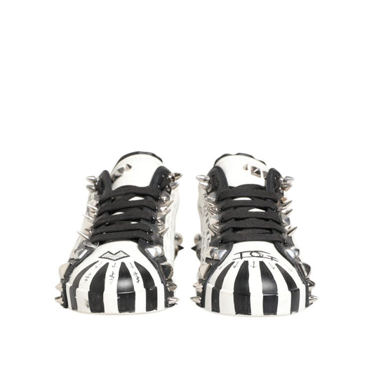 Dolce & Gabbana White Studded Printed Low Top Sneakers Shoes