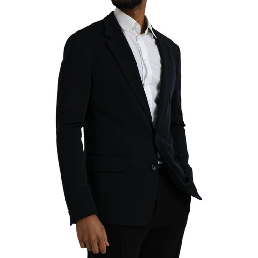 Dolce & Gabbana Blue Wool GOLD Single Breasted Coat Blazer