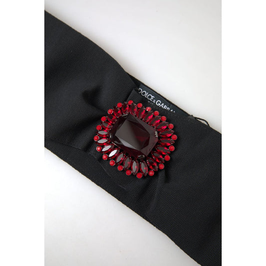 Dolce & Gabbana Black Daisy Crystal Dauphine Waist Belt