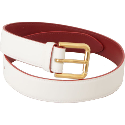 Dolce & Gabbana White Leather Gold Logo Engraved Metal Buckle Belt