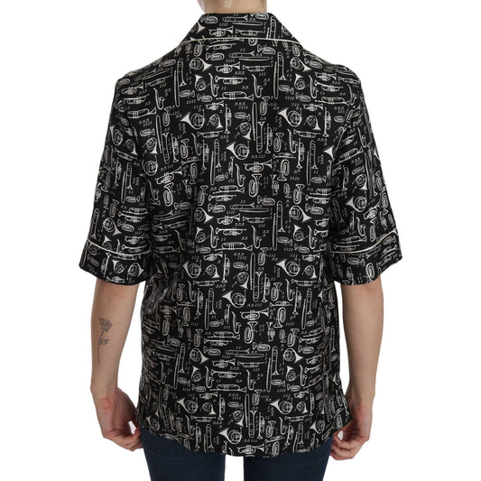 Dolce & Gabbana Black Musical Instrument Collared Blouse Shirt
