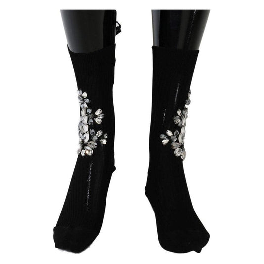 Dolce & Gabbana Black Knitted Floral Clear Crystal Socks