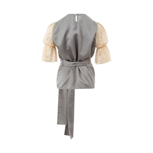 Dsquared² Gold Silver Silk Jacquard See Through Top Blouse