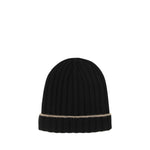 Beanie Hat by Brunello Cucinelli, made of fine cashmere with ribbed knitting. The monochrome design is enriched with contrasting profiles, a refined detail that expresses the discreet elegance of the brand. An essential and sophisticated accessory, ideal for completing winter looks with comfort and style.