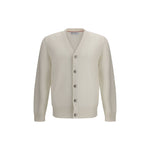 Brunello Cucinelli’s cashmere Cardigan is a sophisticated and luxurious piece featuring a front button closure that adds a classic touch. Ribbed cuffs, a V-neck with ribbed piping, and a high ribbed hemline ensure a snug fit and an elegant look. The monochrome pattern gives the cardigan a clean and versatile look, perfect for easy pairings with a variety of outfits. With a regular fit, this cardigan is ideal for a refined and comfortable look.