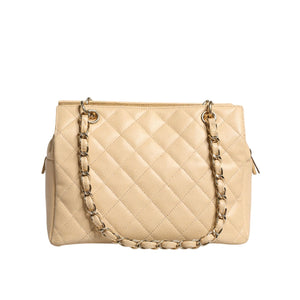 • Chanel Beige Caviar De Coco Chain Leather Purse Bag