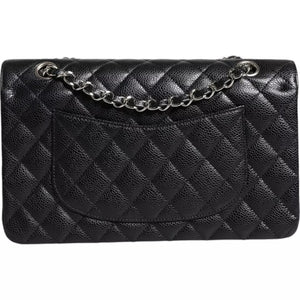 Chanel Black Caviar Medium Classic Double Flap Shoulder Quilted Silver Bag