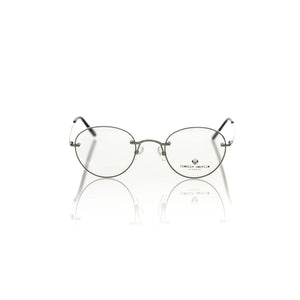 • Frankie Morello Gray Metallic Unisex Eyeglass Frame with round design and Italian craftsmanship.