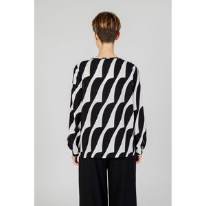 The Street One Printed roundneck blouse w tea 344437 is an elegant and versatile long-sleeved women’s blouse, perfect for any occasion. Made from 100% viscose, it offers a lightweight and comfortable fit, ideal for mid-season or year-round wear. The modern design features a wavy graphic print that adds an original and sophisticated touch to your outfit. The round neckline with a small cut-out detail enhances femininity and style, while the slightly wide long sleeves give a refined, contemporary look. This blouse pairs easily with both tailored trousers and jeans, allowing you to create casual-chic or more formal outfits as needed.