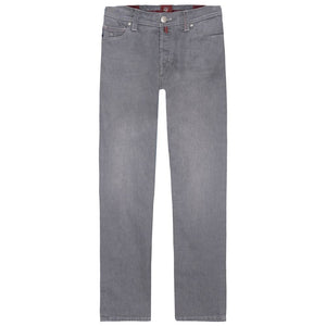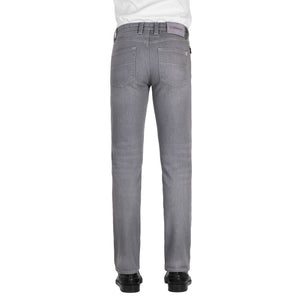 Elevate your denim collection with the distinguished touch of Tramarossa. These exquisite gray jeans blend traditional tailoring with a modern edge, crafted from premium cotton with a hint of elastane for comfort. The white stitching accentuates their refined cut, and the plush gray suede patch featuring a metal logo adds an emblem of luxury to your everyday style. Made in Italy, these are not just jeans; they’re a statement.